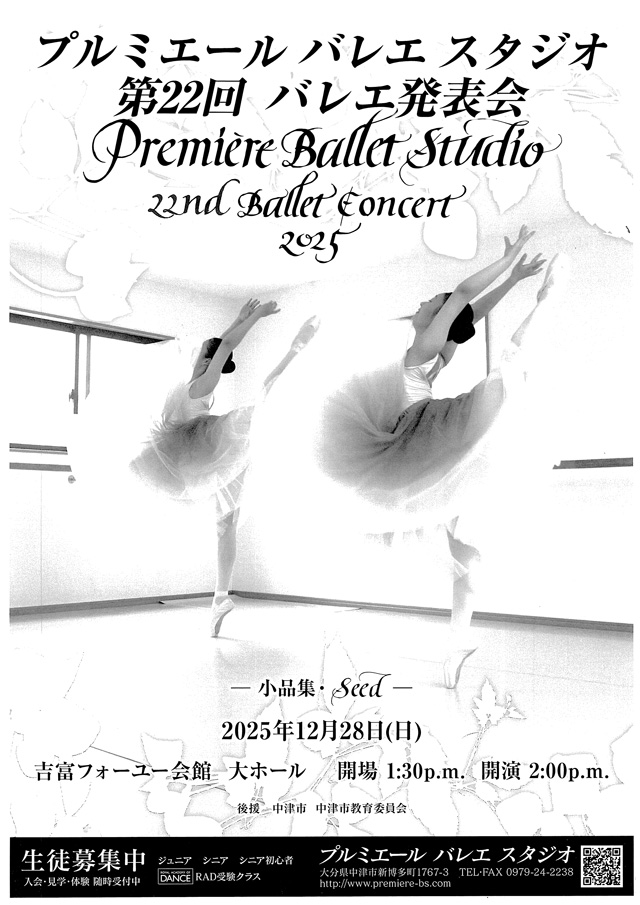 - 2022年度発表会が12月4日(日)吉富フォー・ユー会館大ホールに決定されました。13:30開演予定